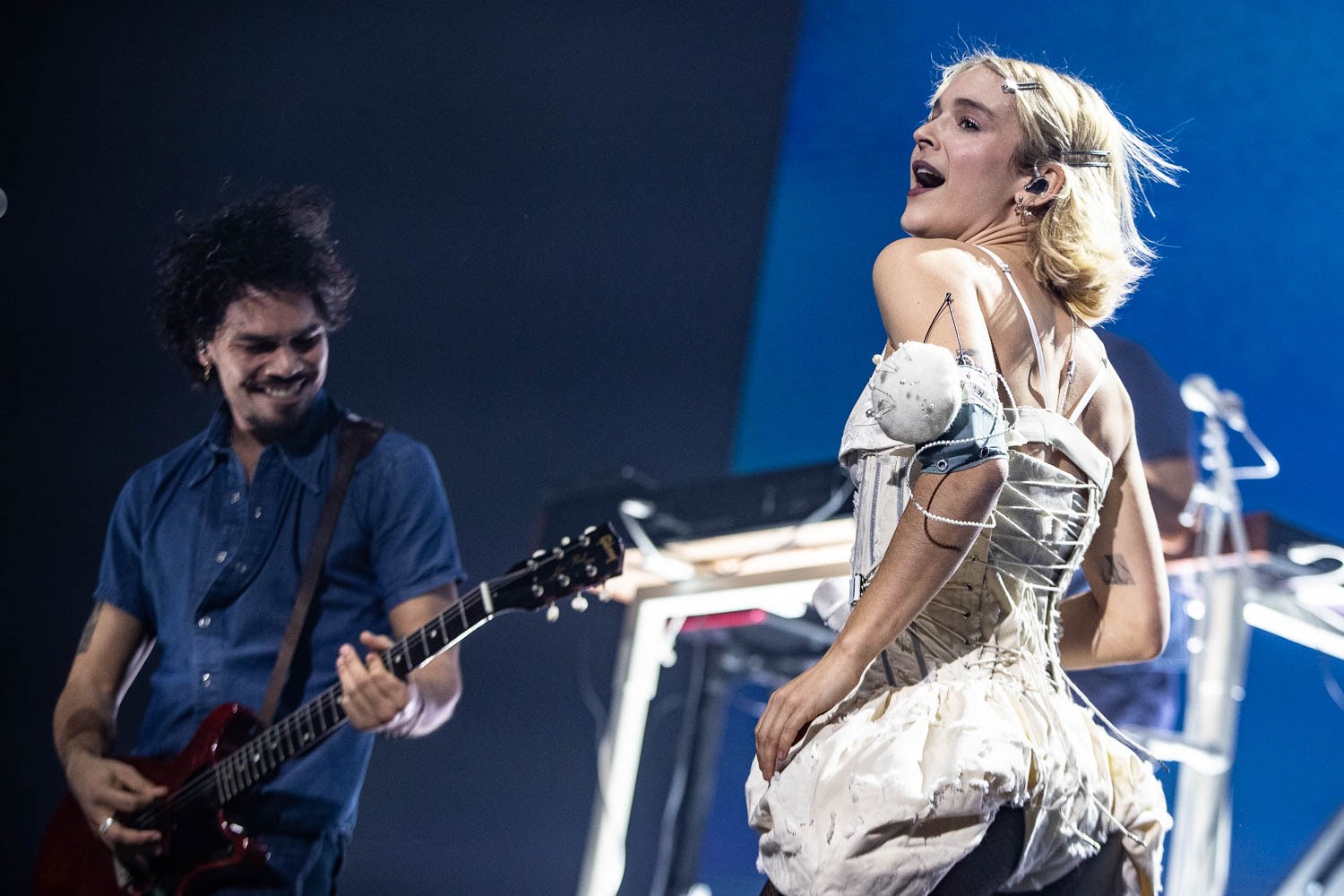 In een kleine twee uur bracht de zangeres in een uitverkocht huis een dwarsdoorsnede van haar twee albums, waarbij ze de show een vliegende start gaf met een reeks opzwepende nummers. Songs als 'Wie we morgen zijn' en 'Hypothetisch' kregen een bijna punkachtige vertolking, die de fans in Amsterdam in een kolkende massa veranderde. - Trouw